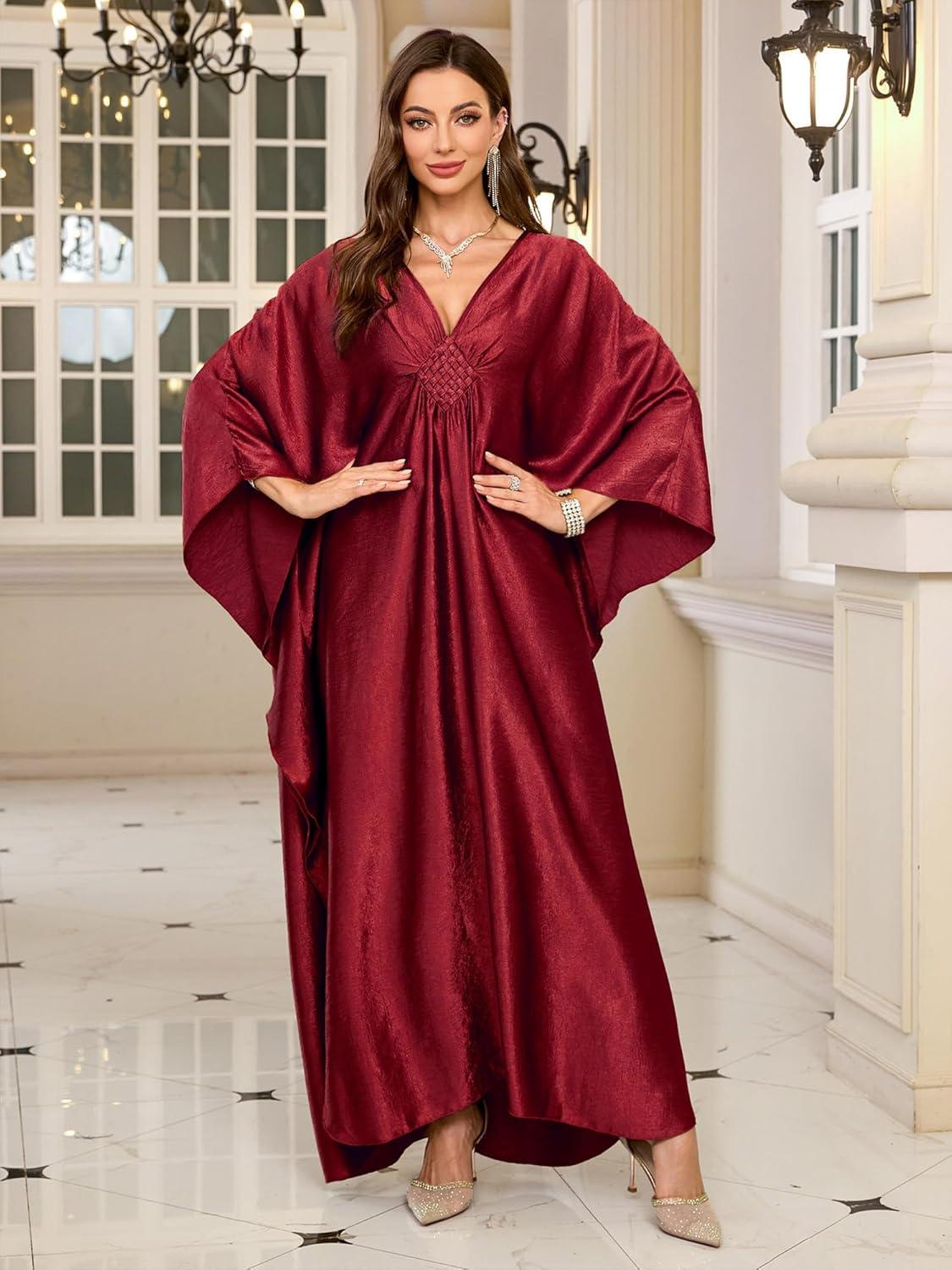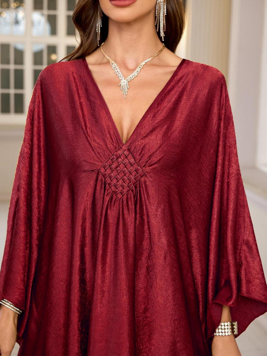 Moss Rose Caftan Coverup Dresses for Women V Neck Summer Swimsuit Kaftan Plus Size Maxi Beach Vacation Clothes(C Dark Red)