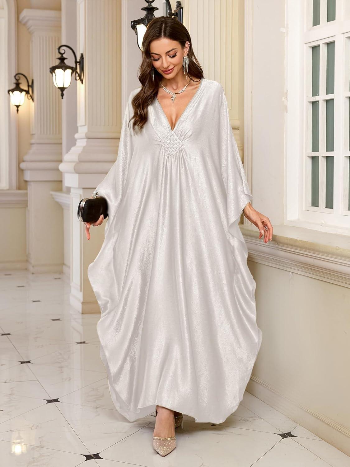 Moss Rose Caftan Coverup Dresses for Women V Neck Summer Swimsuit Kaftan Plus Size Maxi Beach Vacation Clothes(C White)