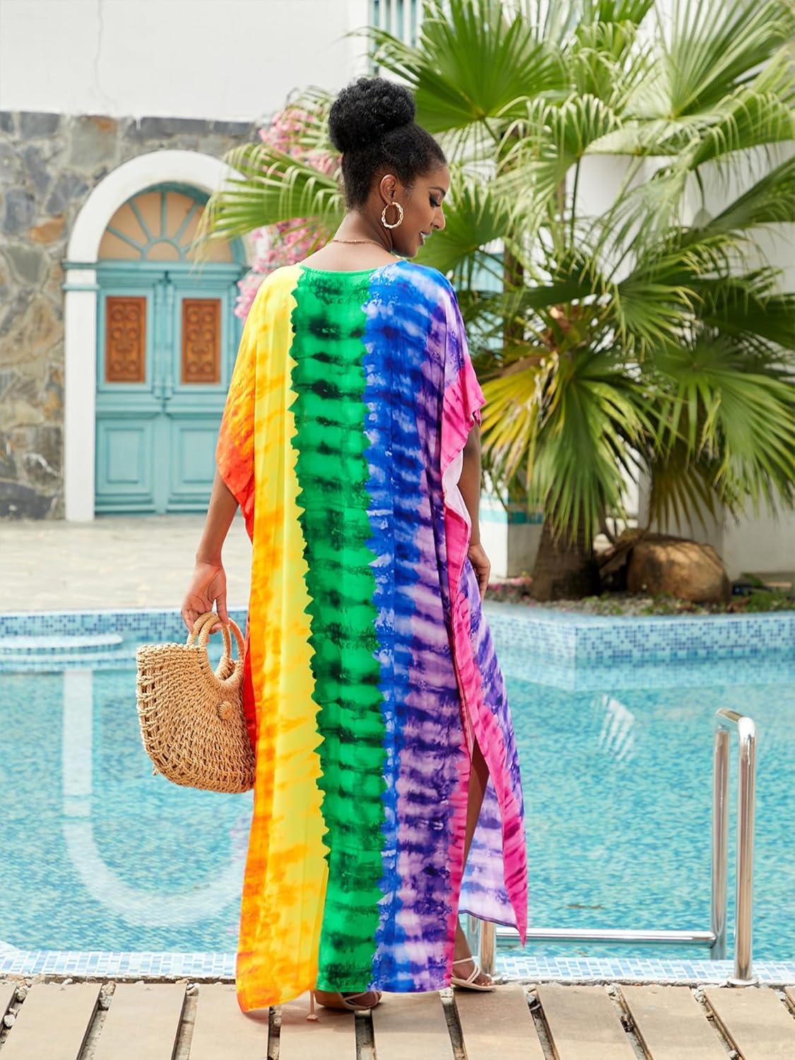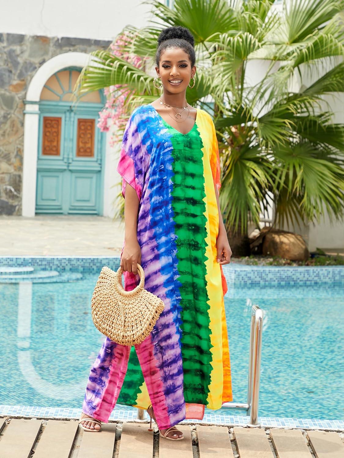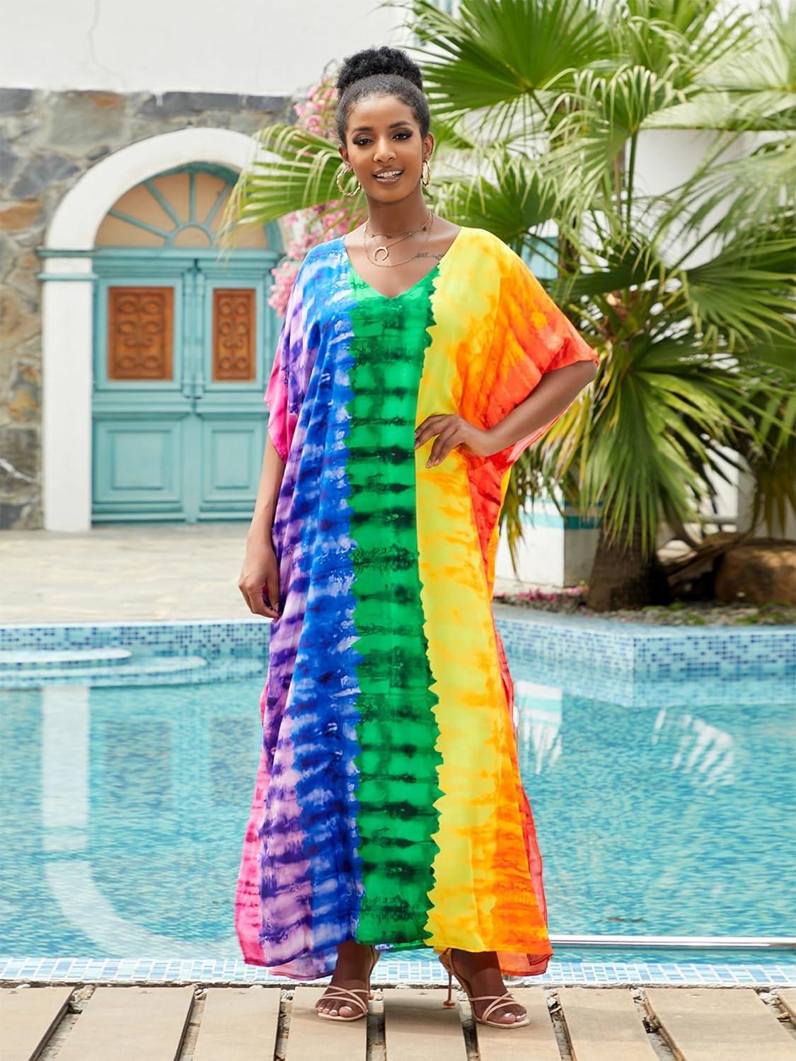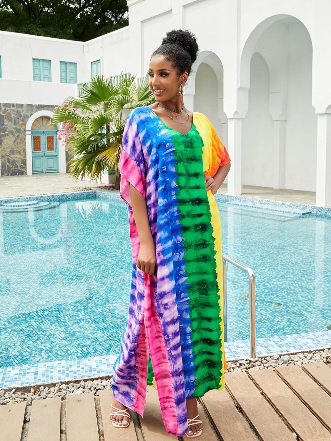 Moss Rose Kaftan Dresses for Women V Neck Summer Swimsuit Cover up Caftan Maxi Beach Dresses(E Colorful 3)