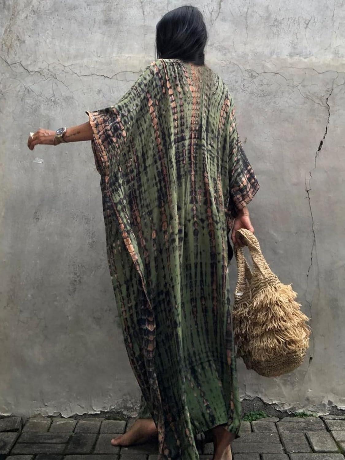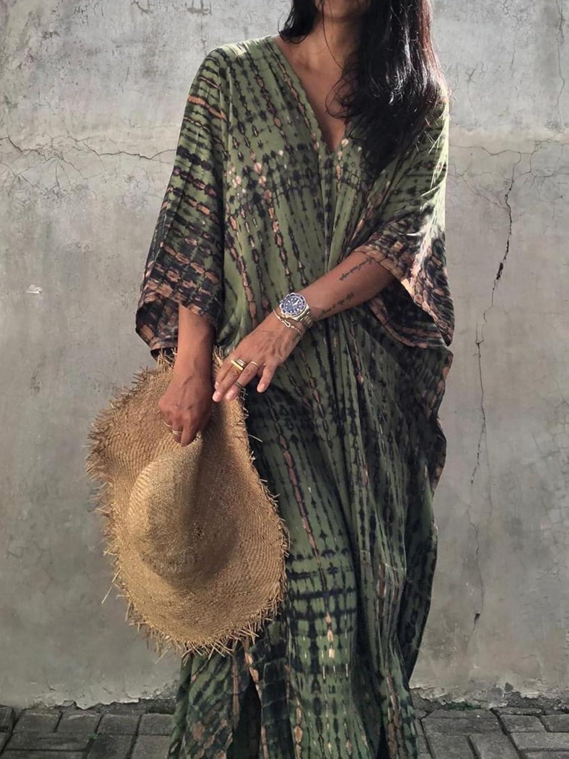 Moss Rose Women Summer Caftan Coverups Dress Kimono Beach Vacation Wear V Neck Print Maxi Boho Dress(Green)