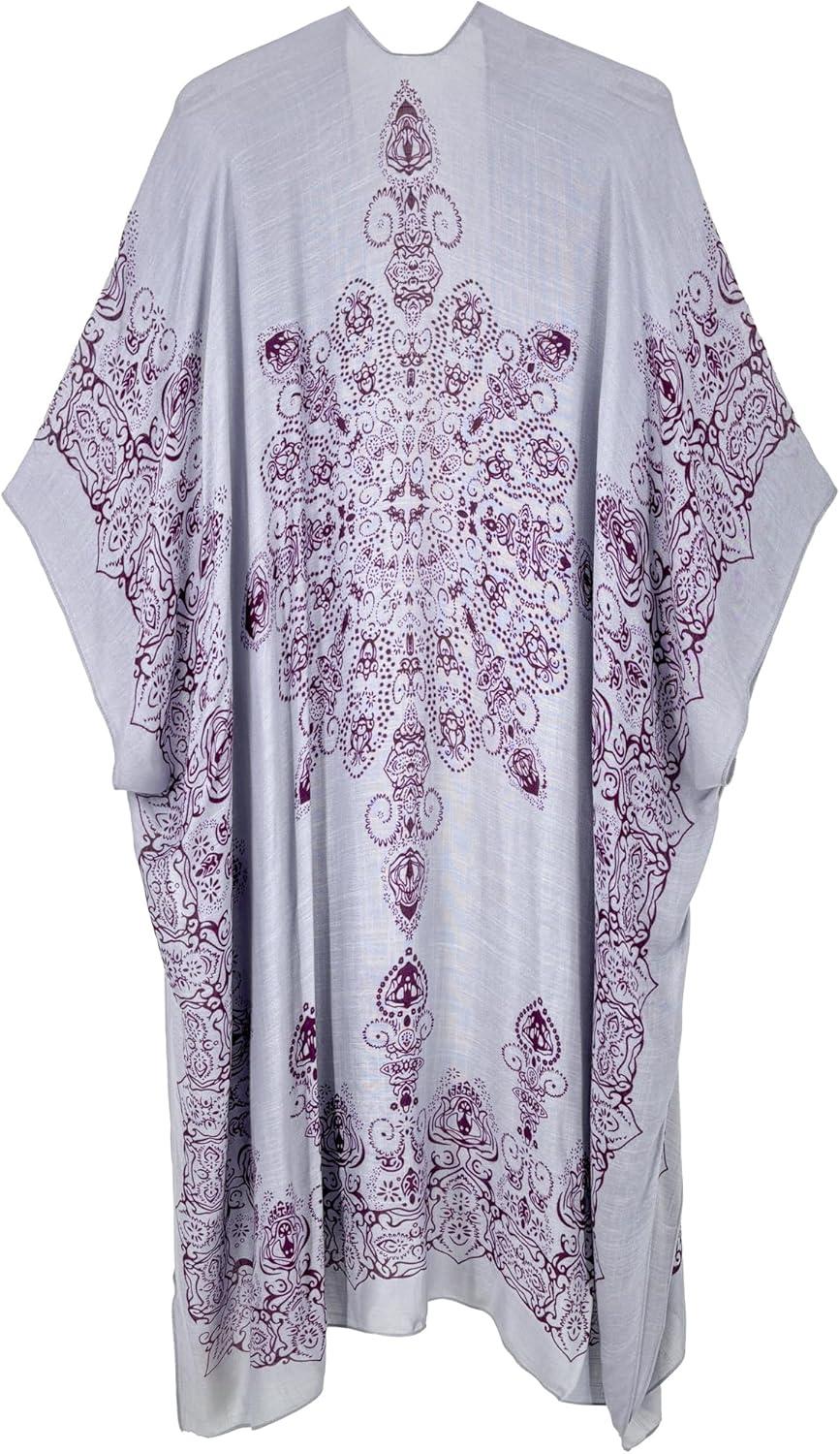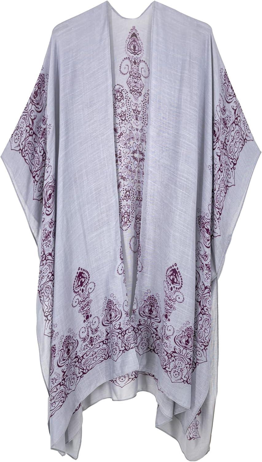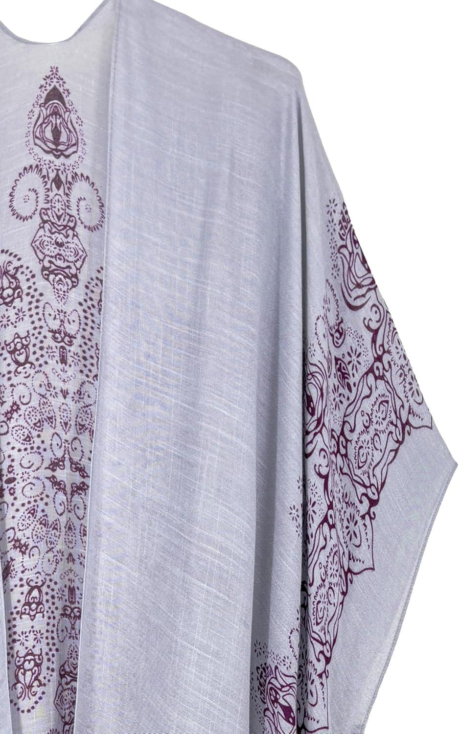 Moss Rose Women’s Beach Cover up Swimsuit Kimono with Bohemian Floral Print, Loose Casual Resort Wear(A Grey Floral)