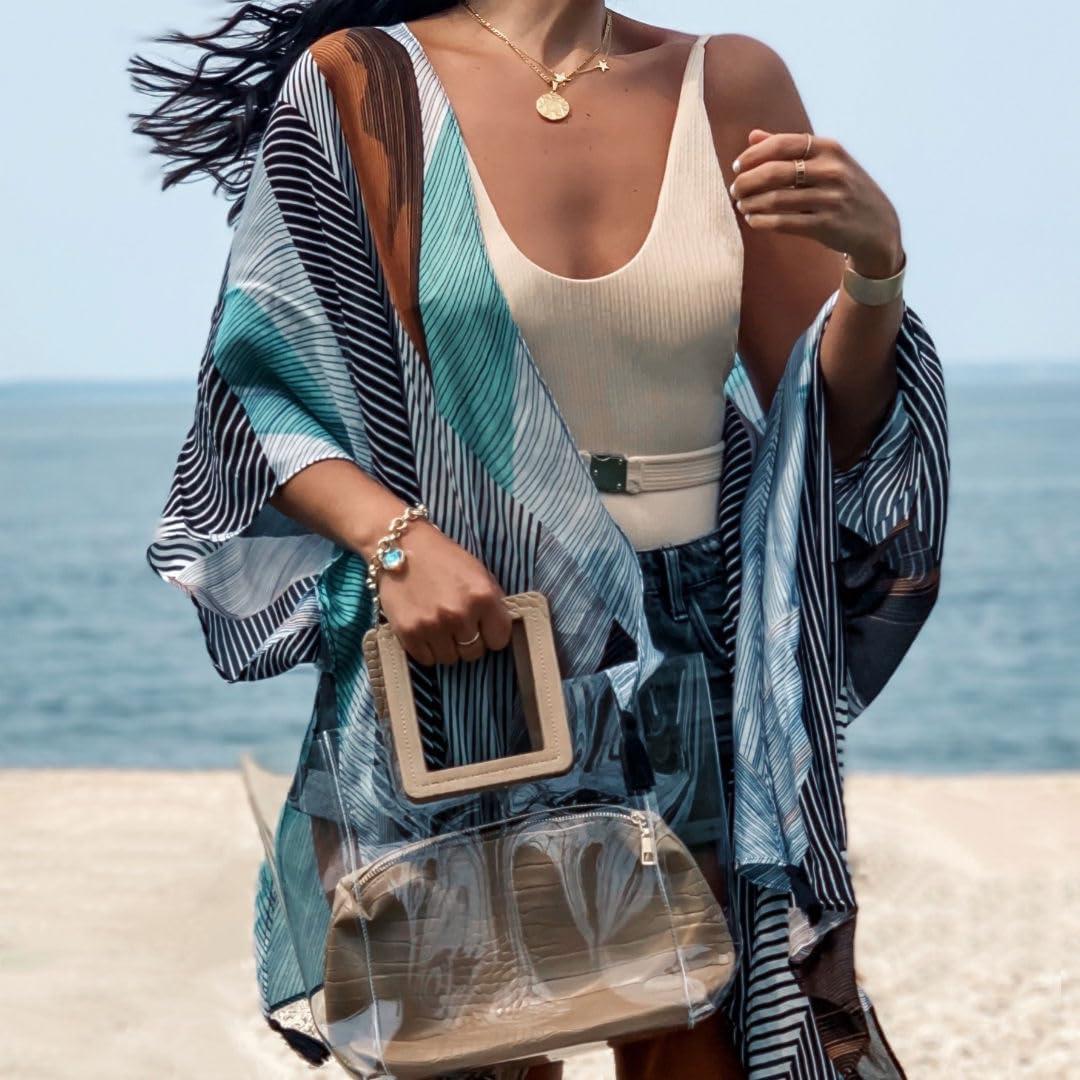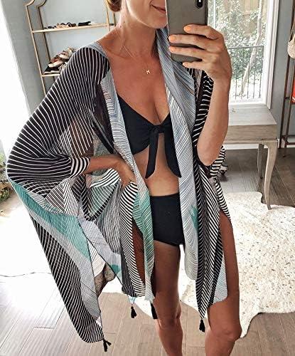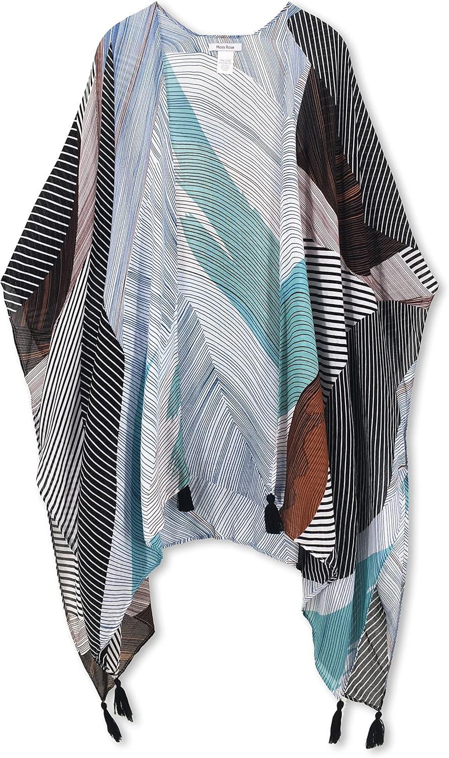 Moss Rose Women’s Beach Cover up Swimsuit Kimono with Bohemian Floral Print, Loose Casual Resort Wear(Aa Merel)