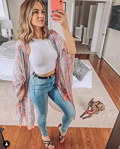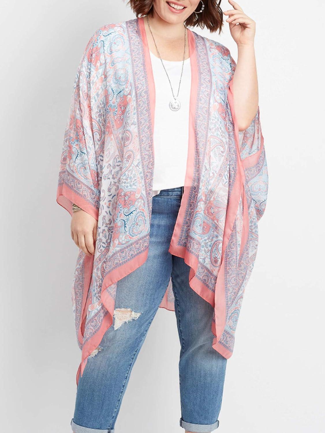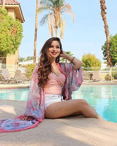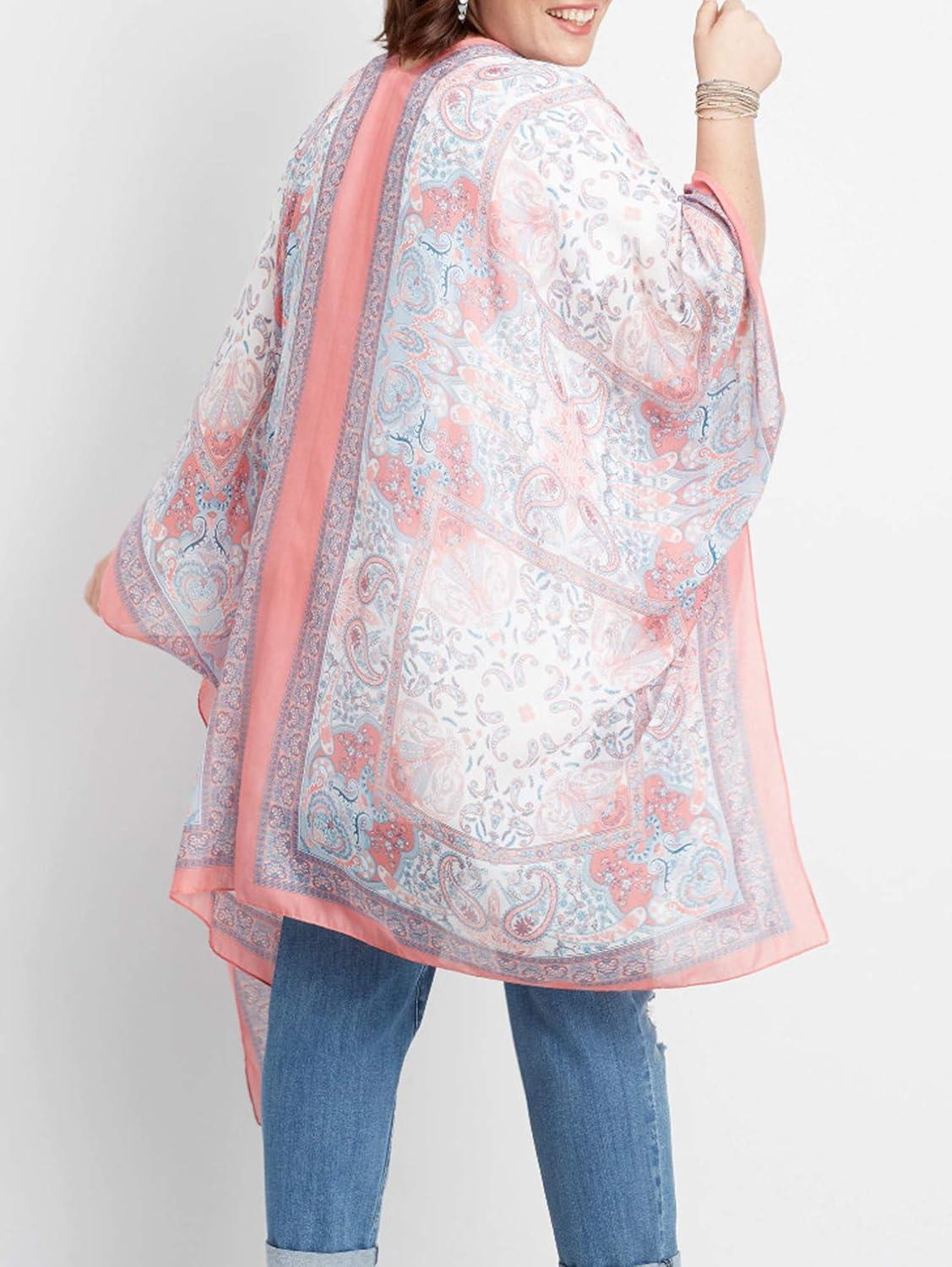 Moss Rose Women’s Beach Cover up Swimsuit Kimono with Bohemian Floral Print, Loose Casual Resort Wear(B Pink Paisley)