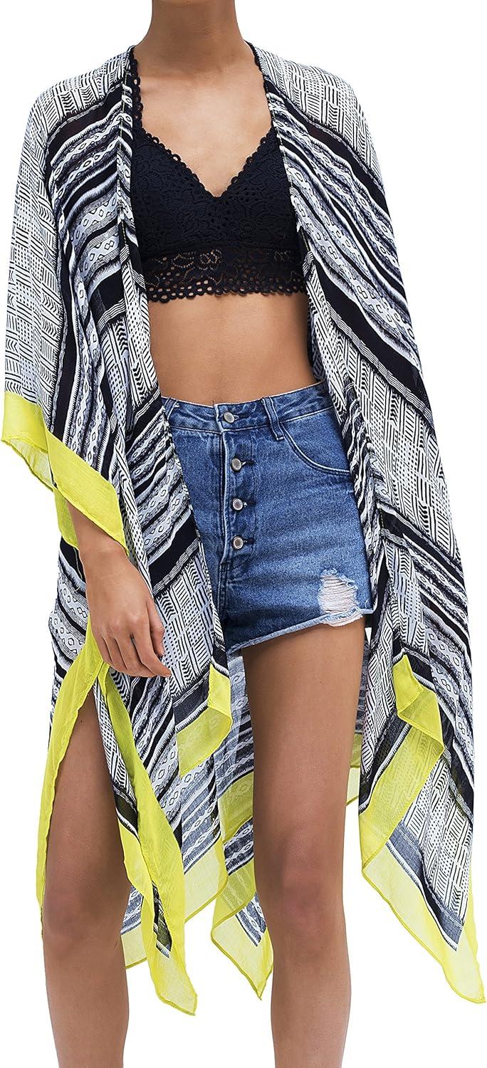 Moss Rose Women’s Beach Cover up Swimsuit Kimono with Bohemian Floral Print, Loose Casual Resort Wear(B Solenne)