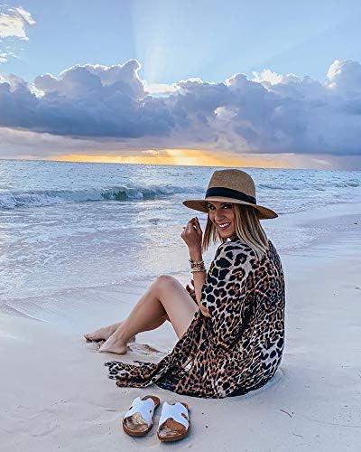 Moss Rose Women’s Beach Cover up Swimsuit Kimono with Bohemian Floral Print, Loose Casual Resort Wear(Brown Black White)