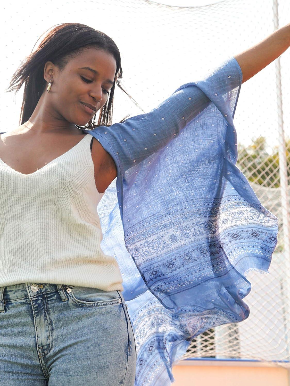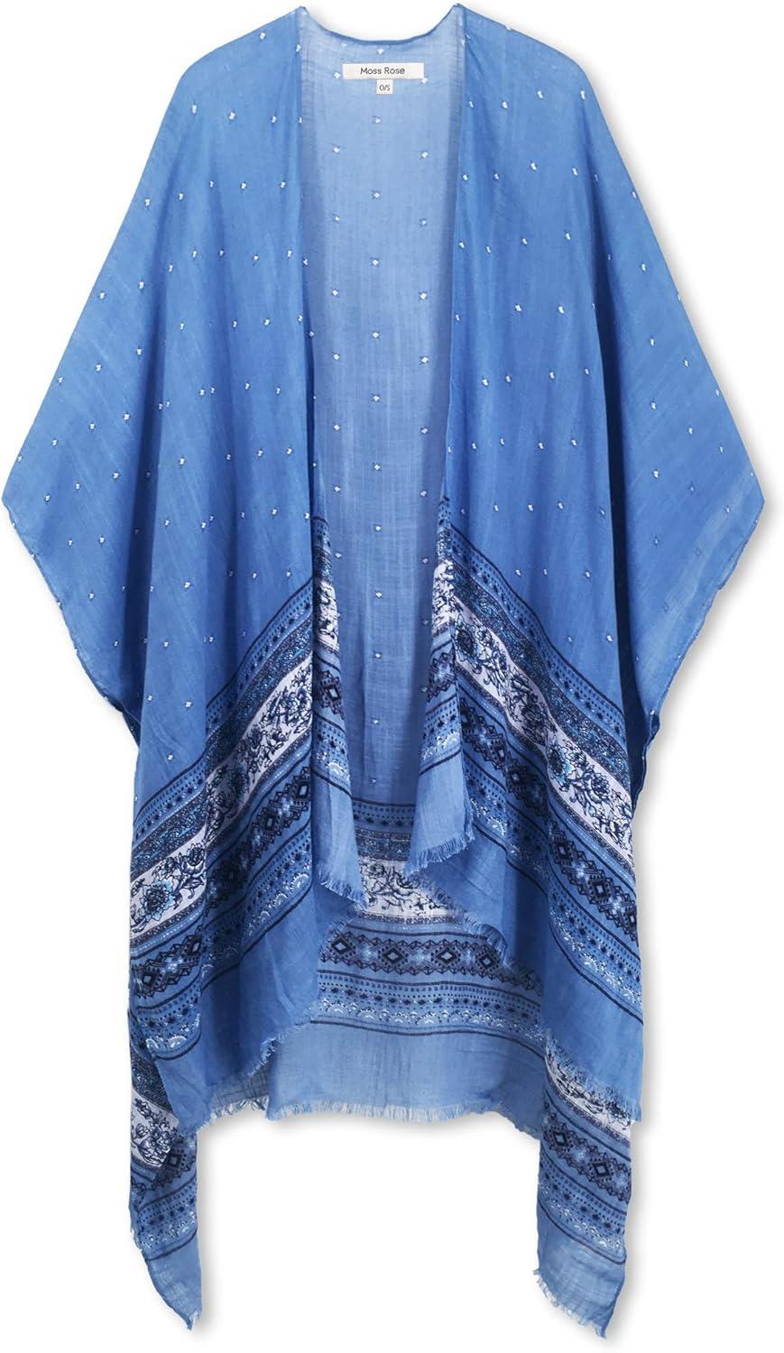 Moss Rose Women’s Beach Cover up Swimsuit Kimono with Bohemian Floral Print, Loose Casual Resort Wear(C Nebulas Blue)