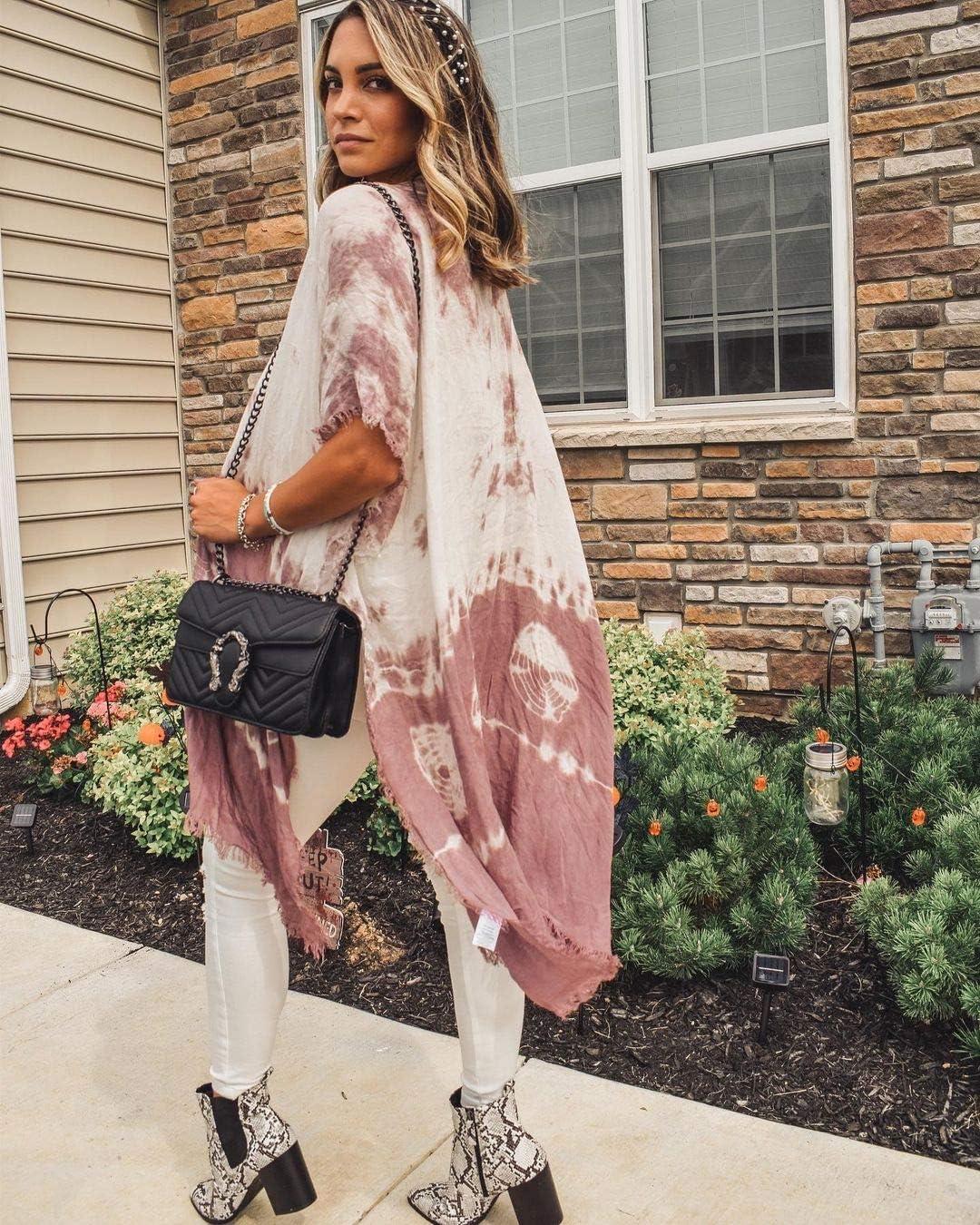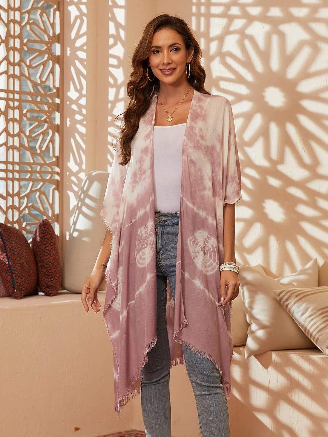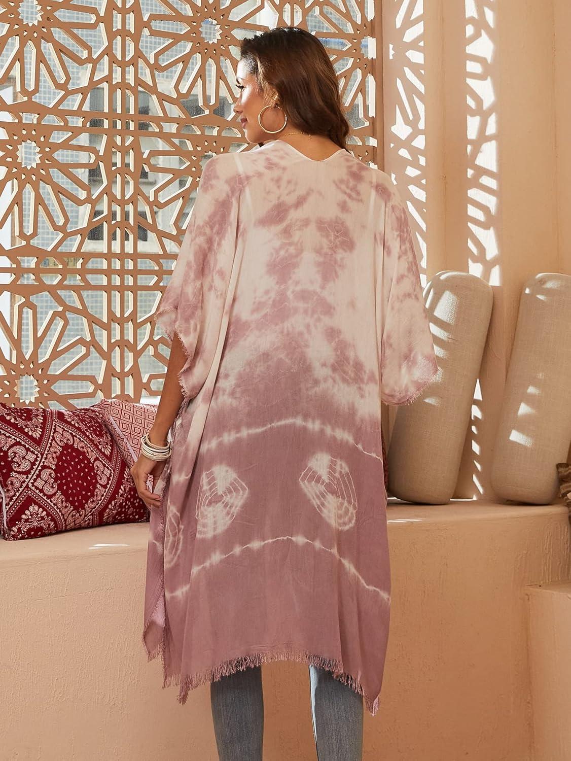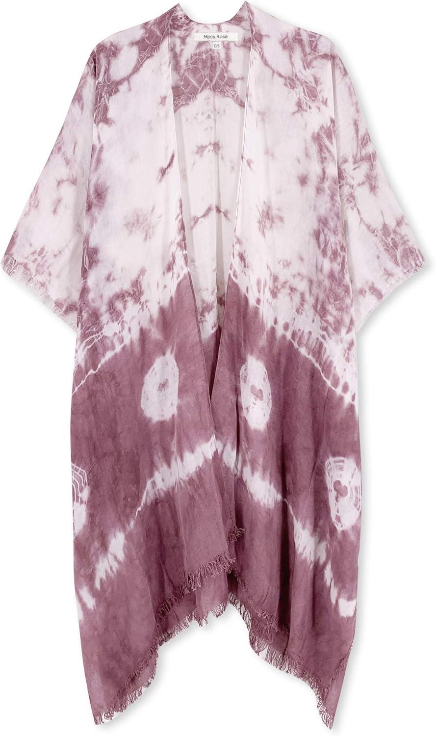Moss Rose Women’s Beach Cover up Swimsuit Kimono with Bohemian Floral Print, Loose Casual Resort Wear(E Tie-dye Ultra Violet)