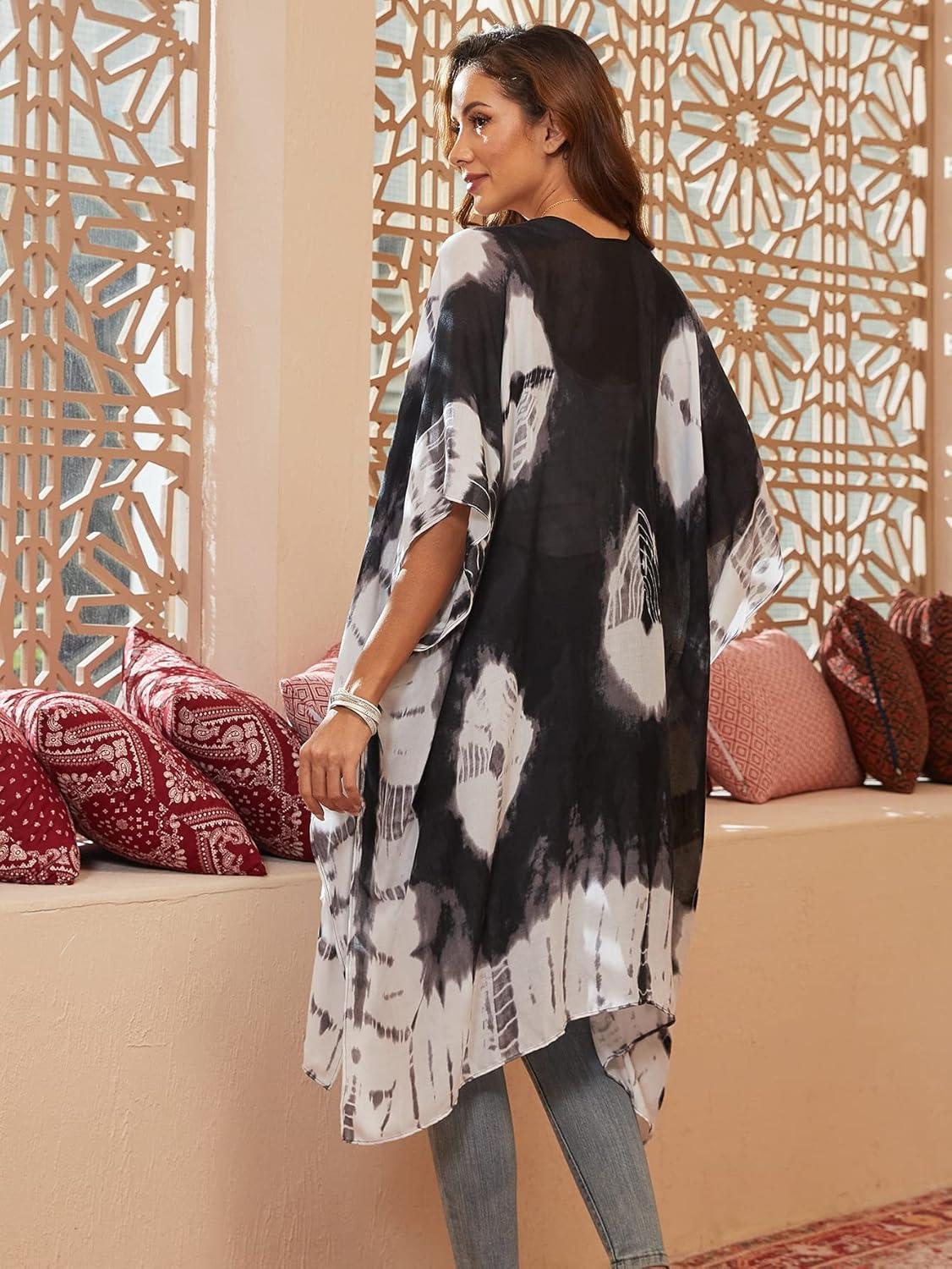 Moss Rose Women’s Beach Cover up Swimsuit Kimono with Bohemian Floral Print, Loose Casual Resort Wear(Fa Black)