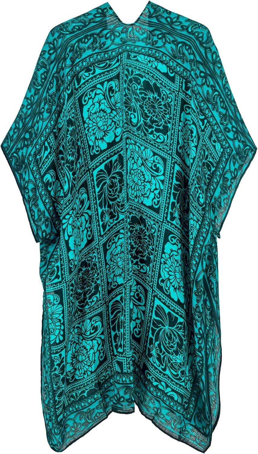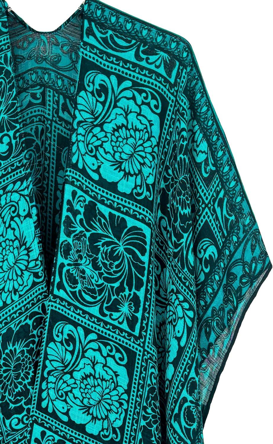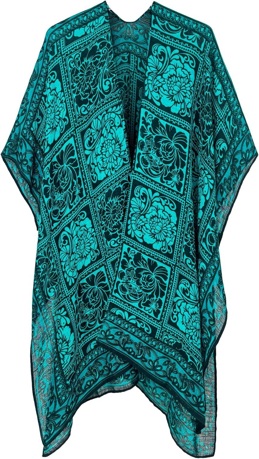 Moss Rose Women’s Beach Cover up Swimsuit Kimono with Bohemian Floral Print, Loose Casual Resort Wear(Z Green Floral)