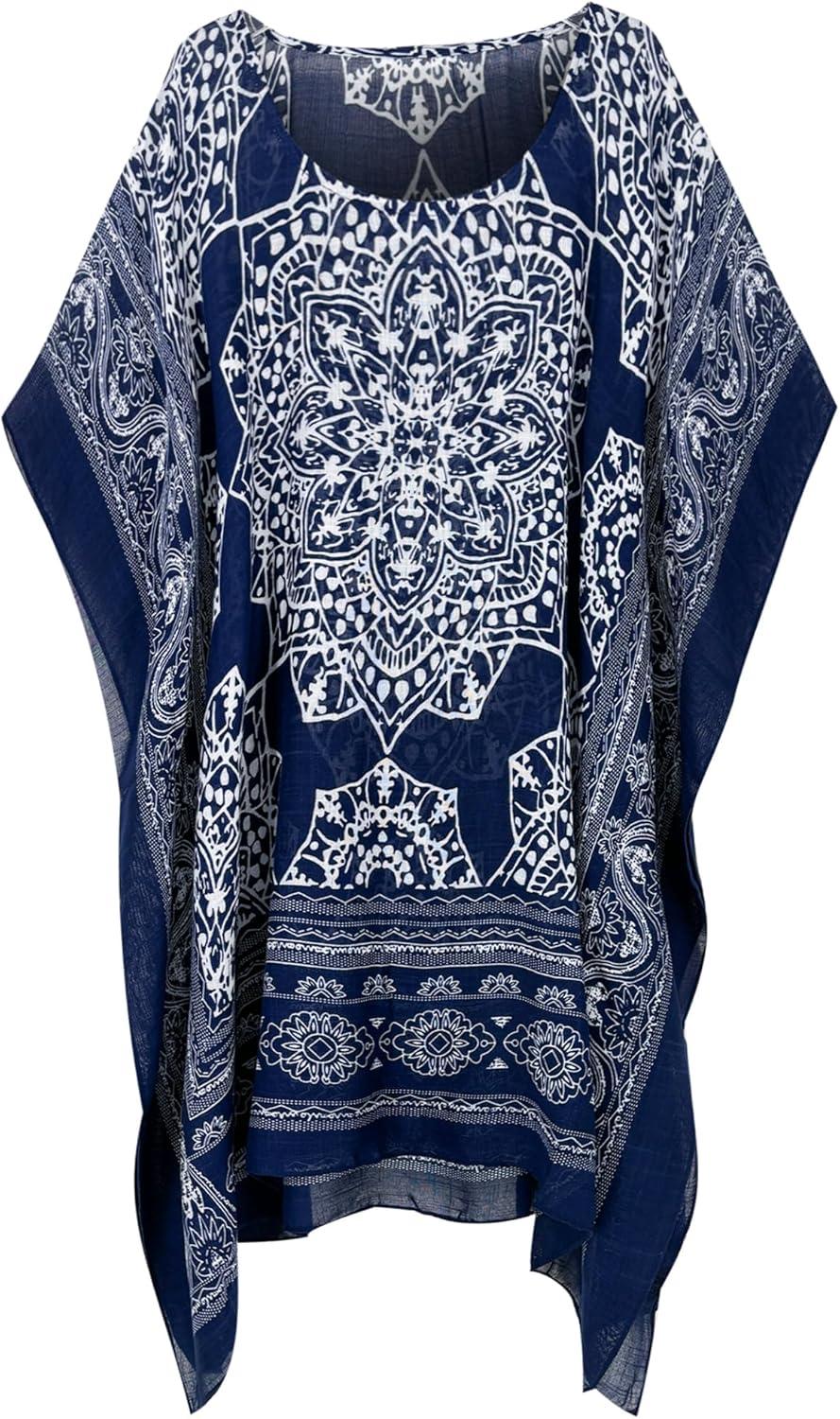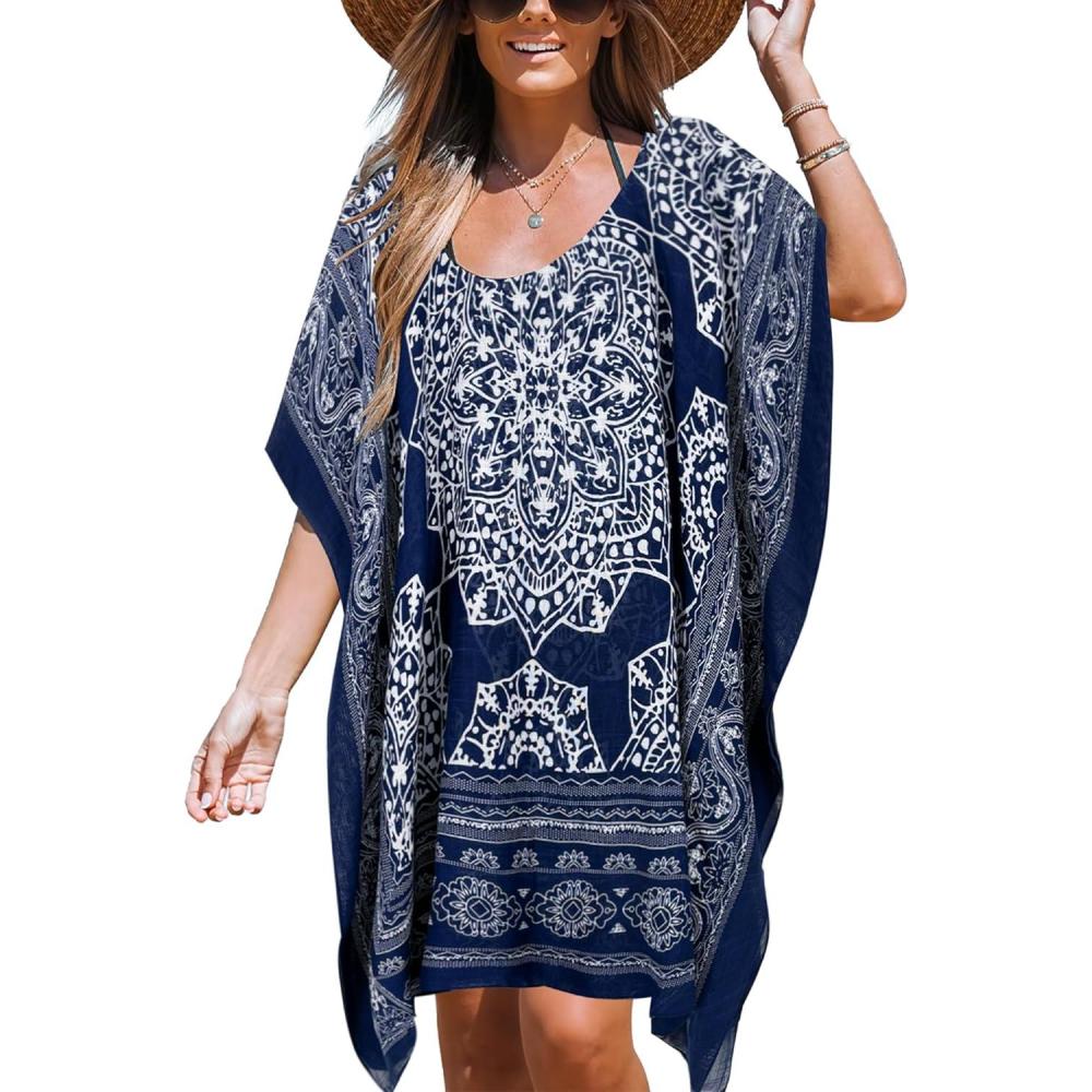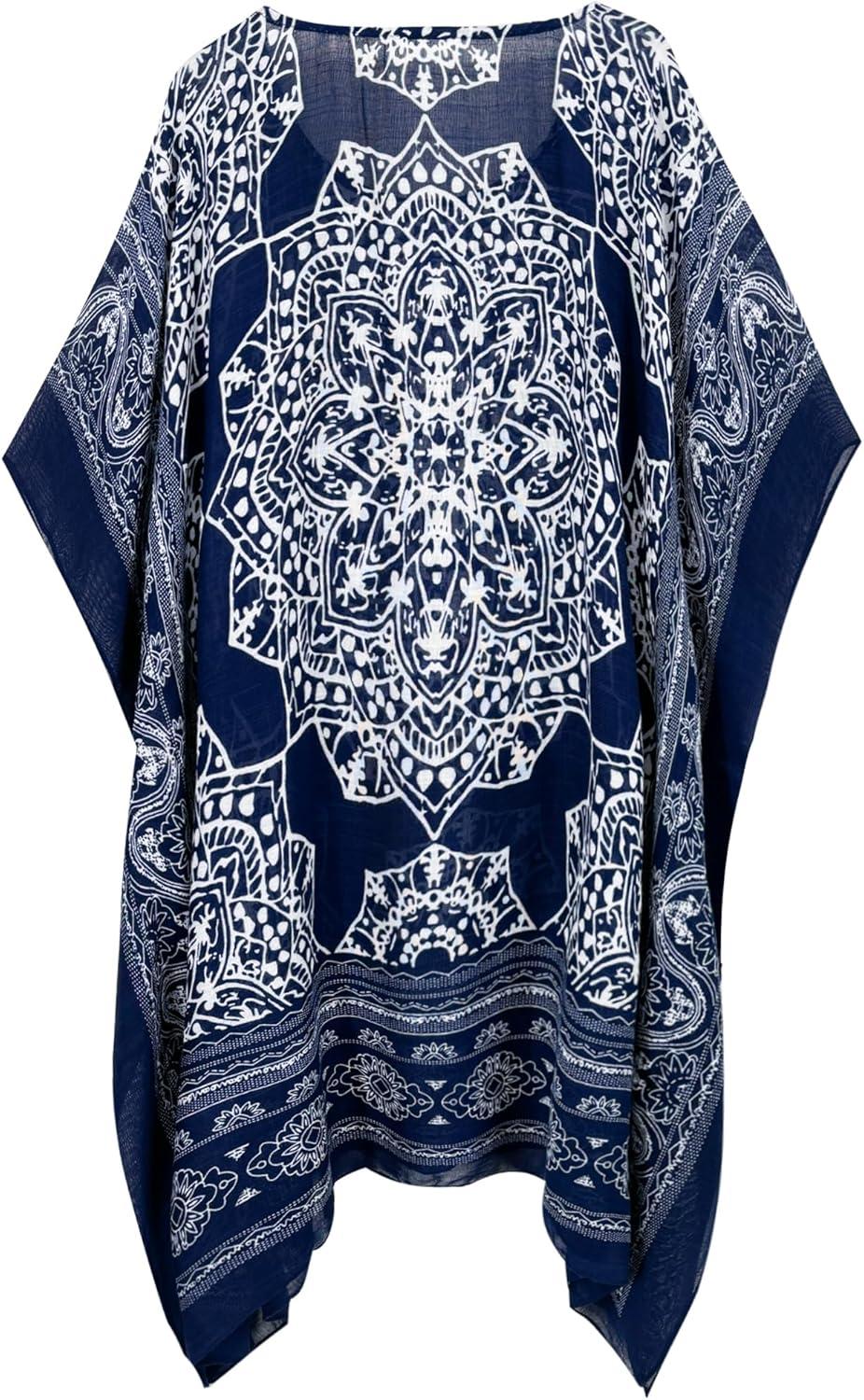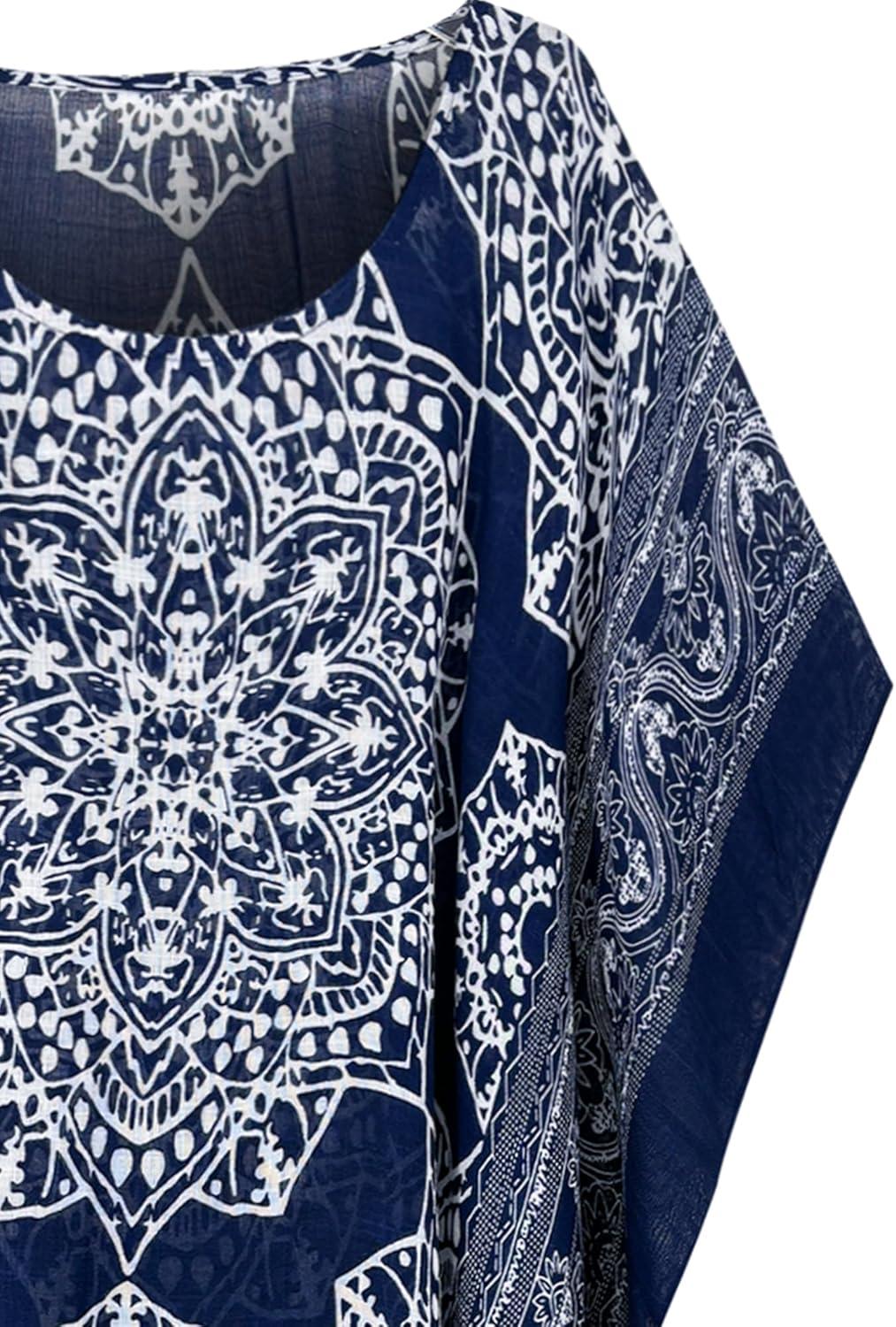Moss Rose Women’s Beach Kaftan Dresses Kimono Swimsuit Cover up for Bathing Suit with Floral Pattern(A-navy Print)