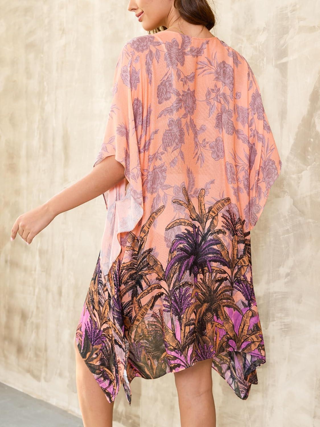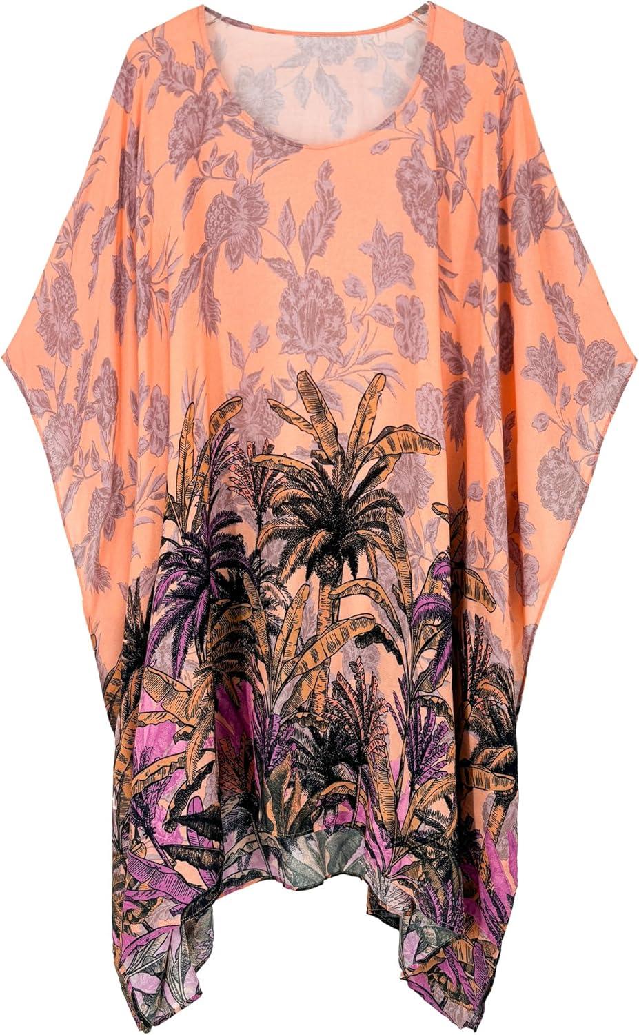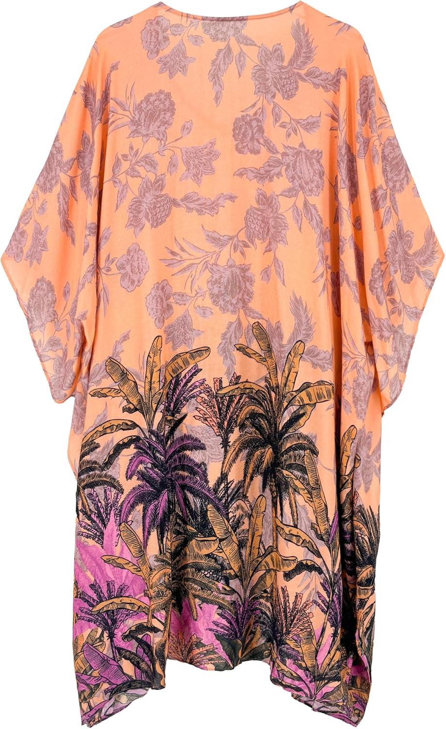 Moss Rose Women’s Beach Kaftan Dresses Kimono Swimsuit Cover up for Bathing Suit with Floral Pattern(B-peach Print)