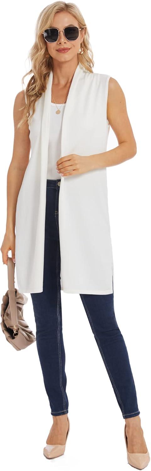 Moss Rose Women’s Long Knit Cardigan Vest Casual Sleeveless Open Front Draped Duster Vest (Available in Plus Size)(Ivory)