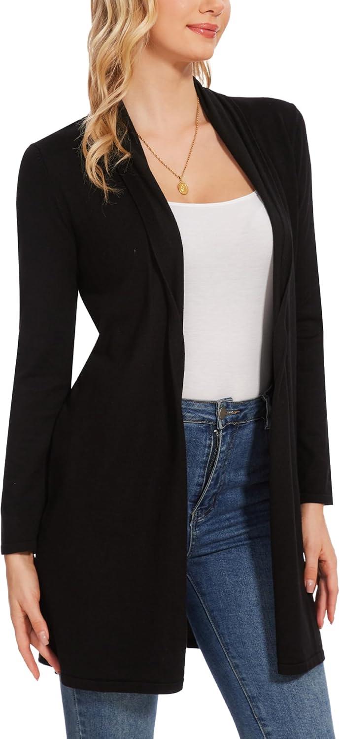Moss Rose Women’s Long Knit Cardigan Vest Casual Sleeveless Open Front Draped Duster Vest (Available in Plus Size)(Z-black(long Sleeve))