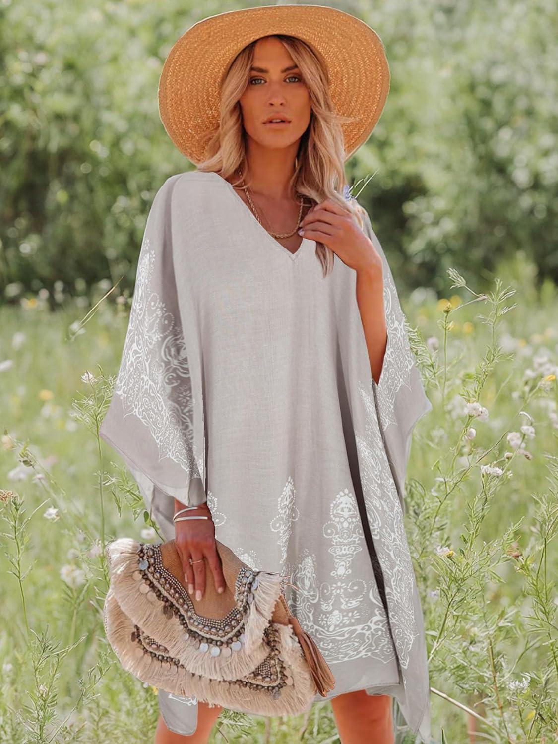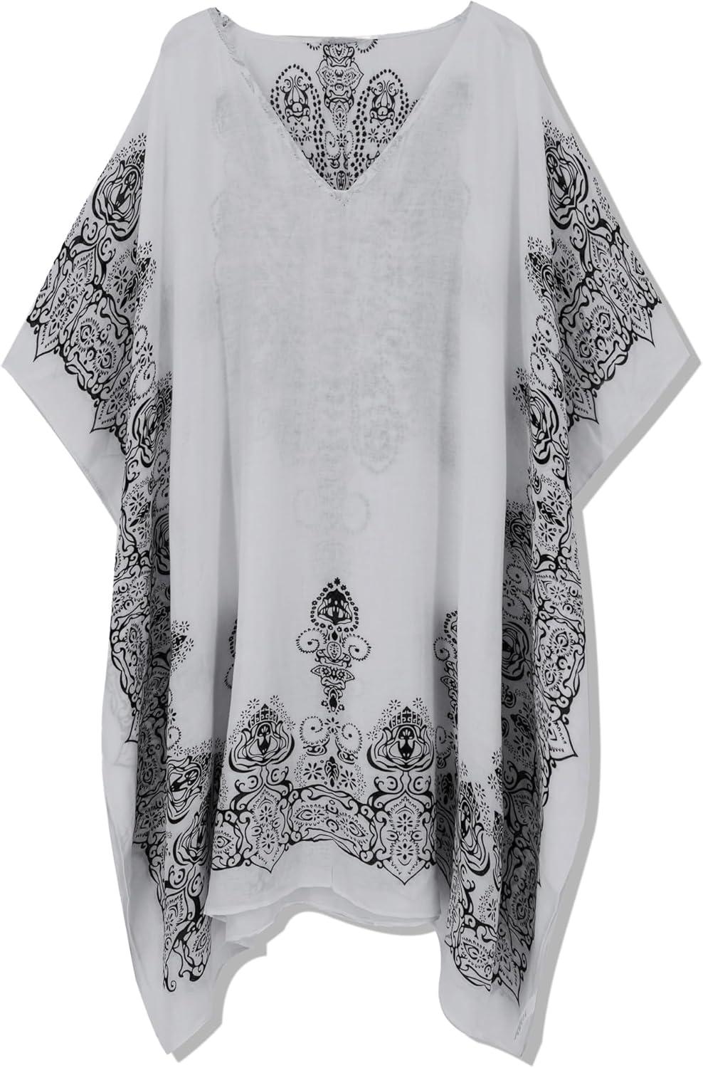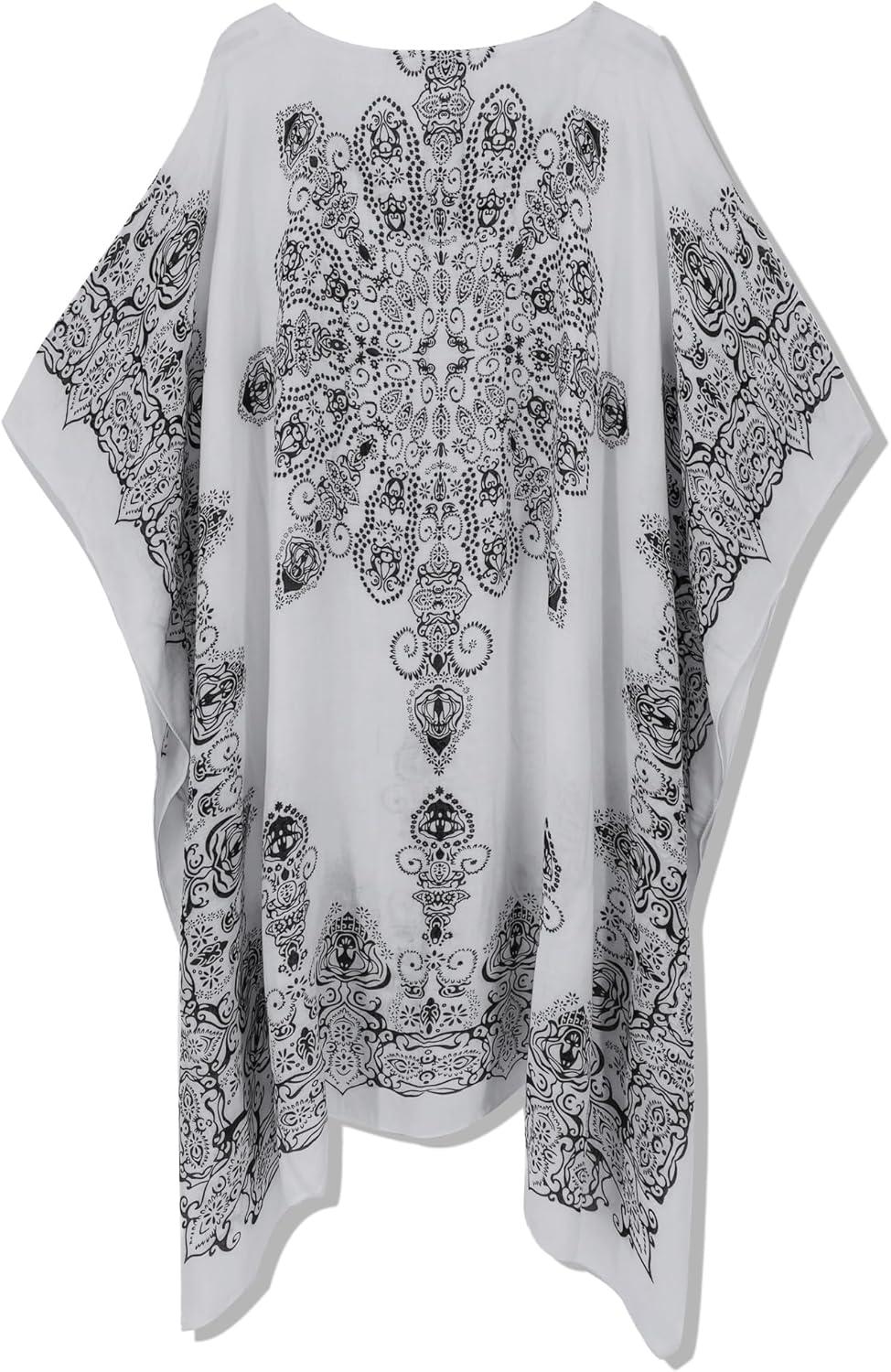 Moss Rose Women’s Swimsuit Cover up Beach Kaftan for Bathing Suit with Floral Pattern(B Grey)