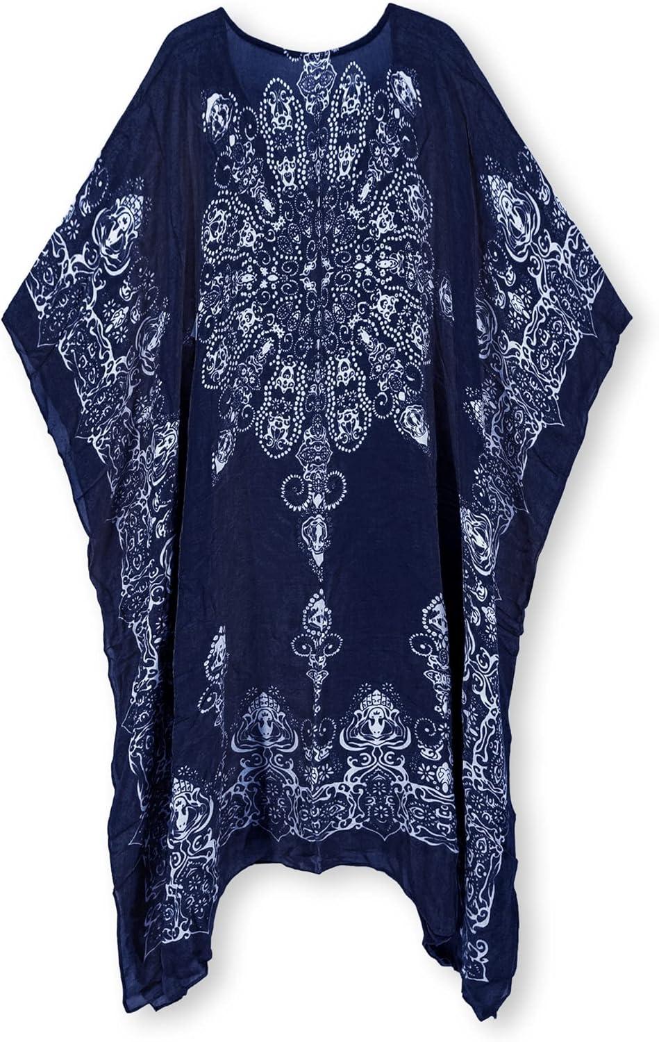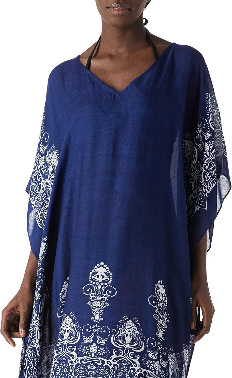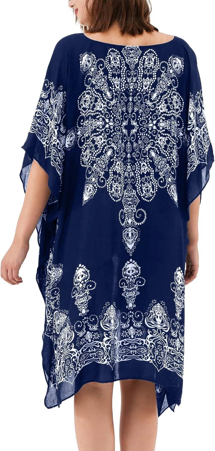 Moss Rose Women’s Swimsuit Cover up Beach Kaftan for Bathing Suit with Floral Pattern(C Adeline Navy 1)