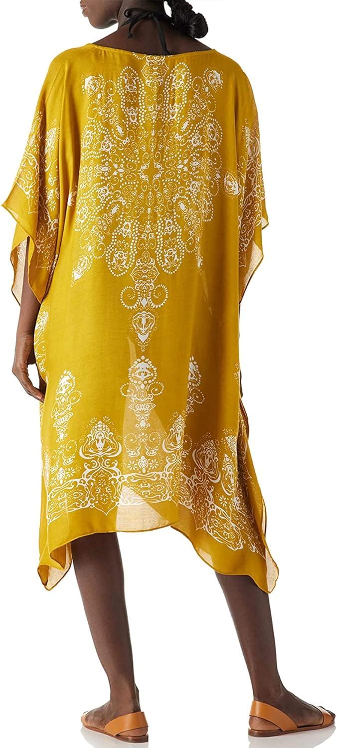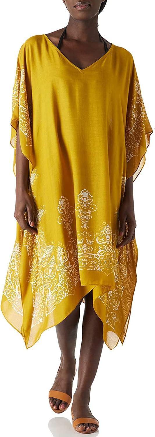 Moss Rose Women’s Swimsuit Cover up Beach Kaftan for Bathing Suit with Floral Pattern(C Adeline Yellow1)