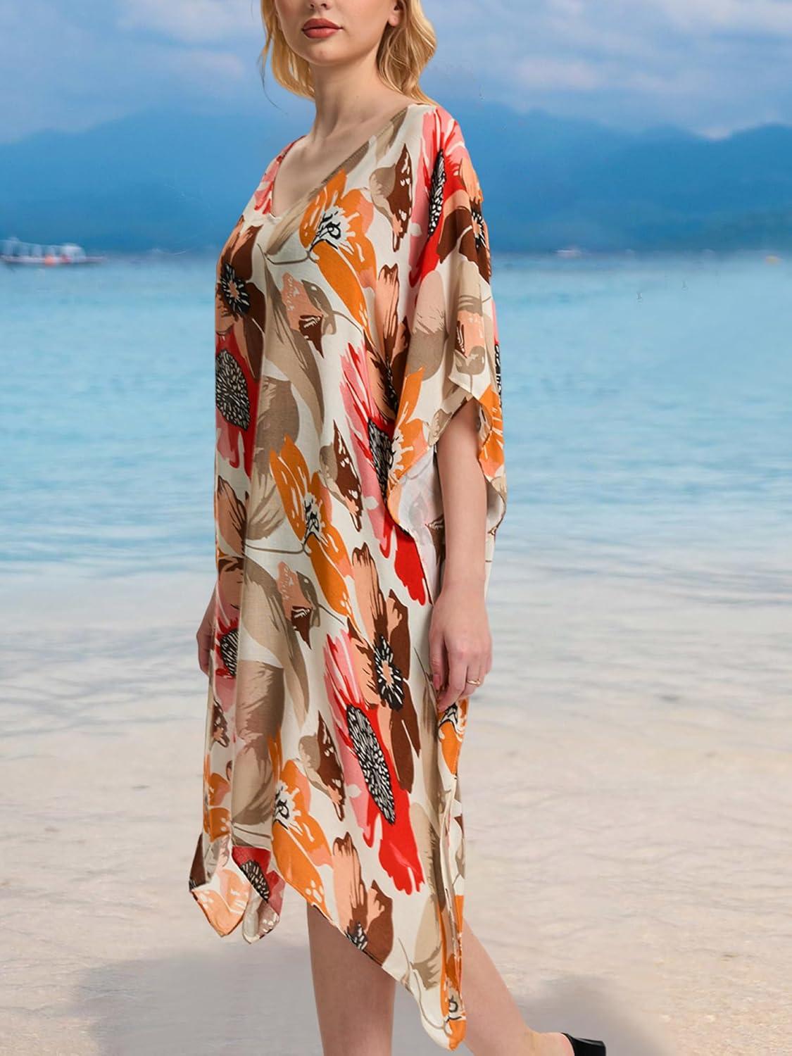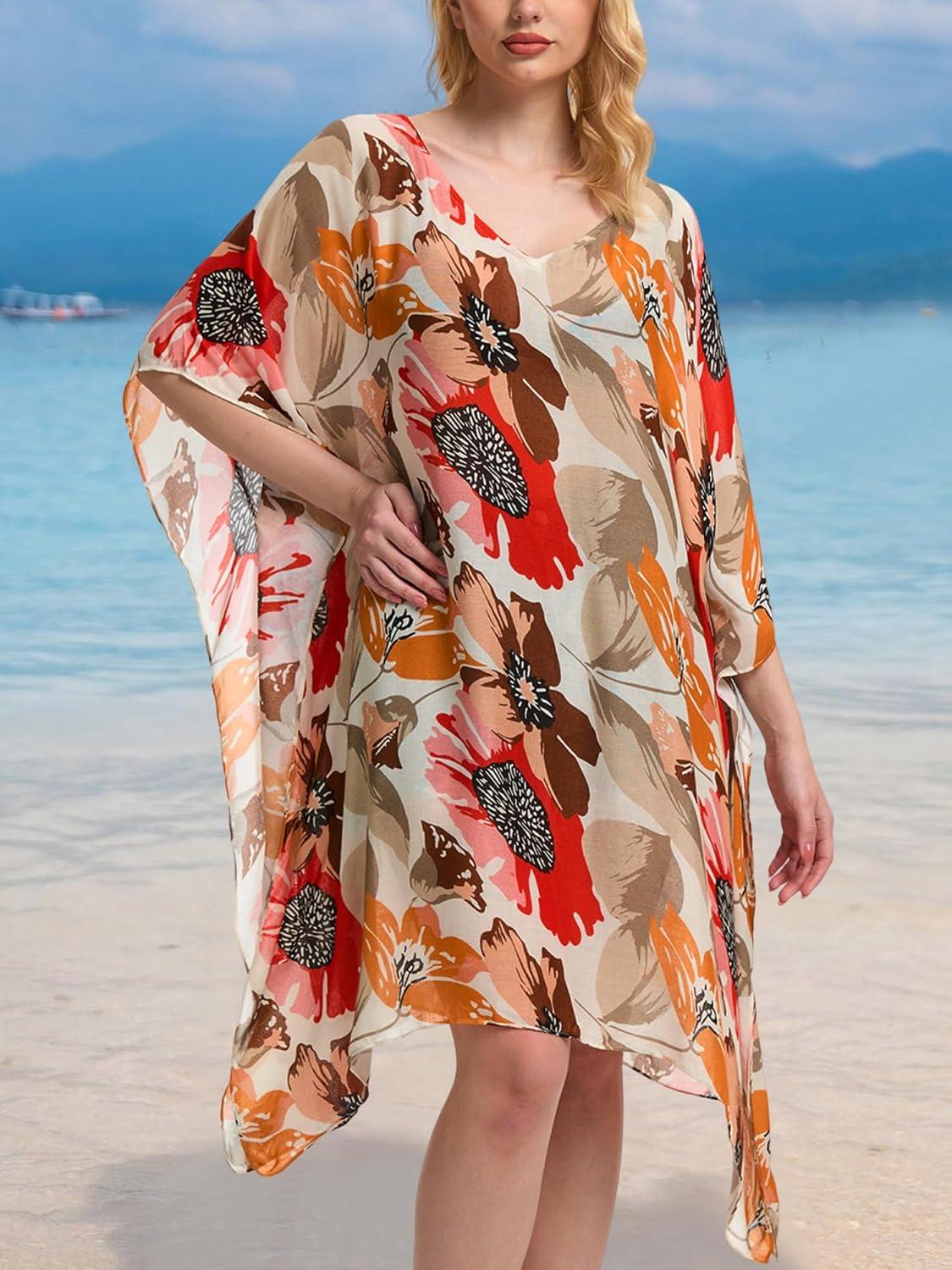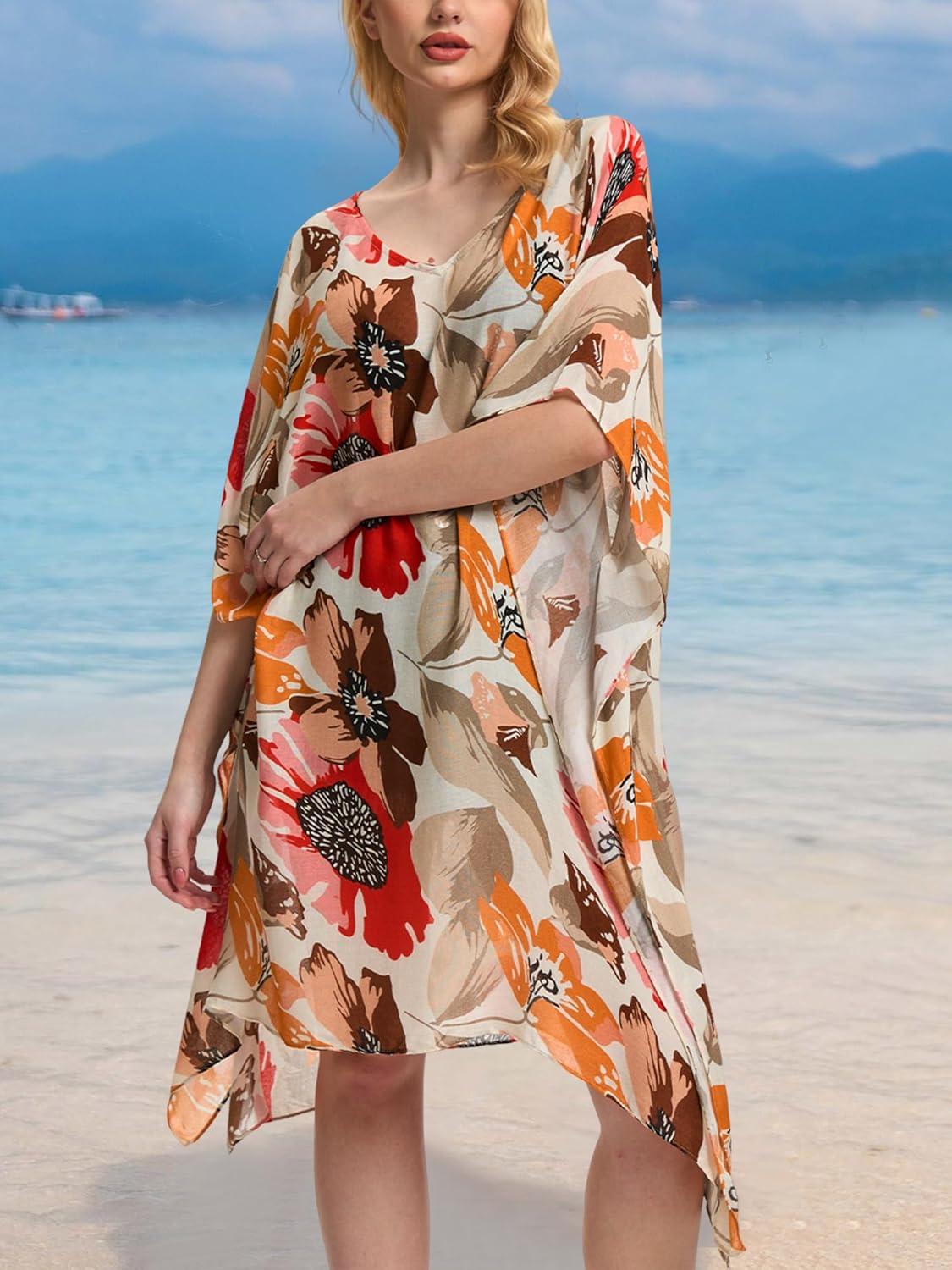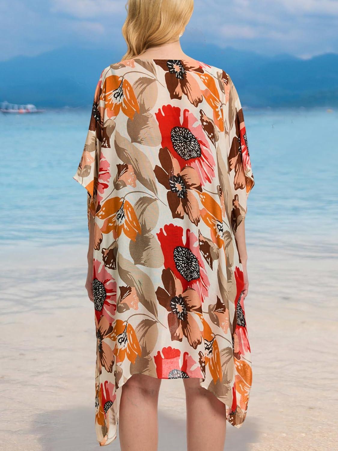 Moss Rose Women’s Swimsuit Cover up Beach Kaftan for Bathing Suit with Floral Pattern(E Red Floral*)