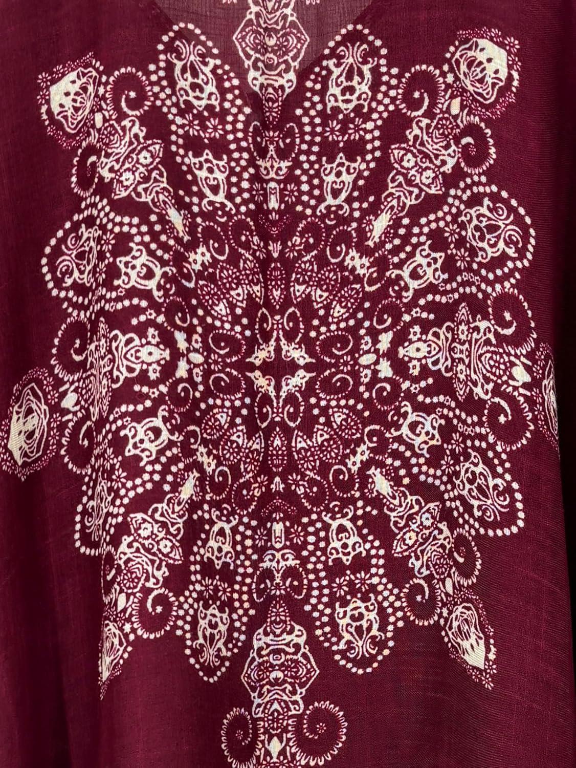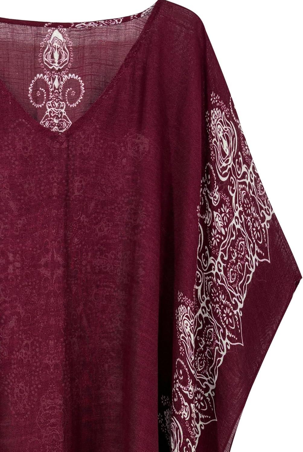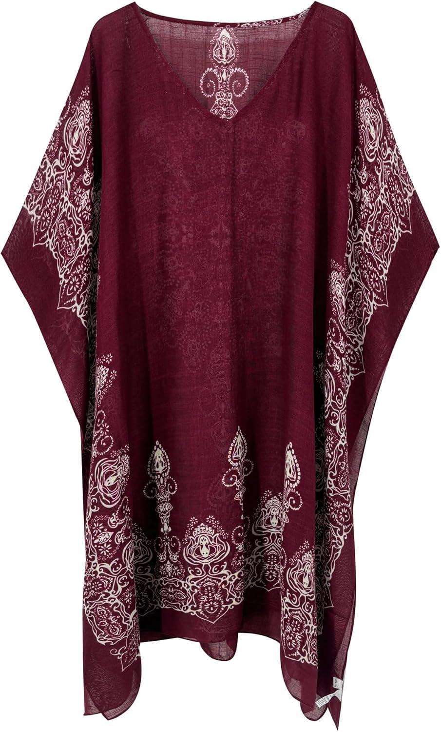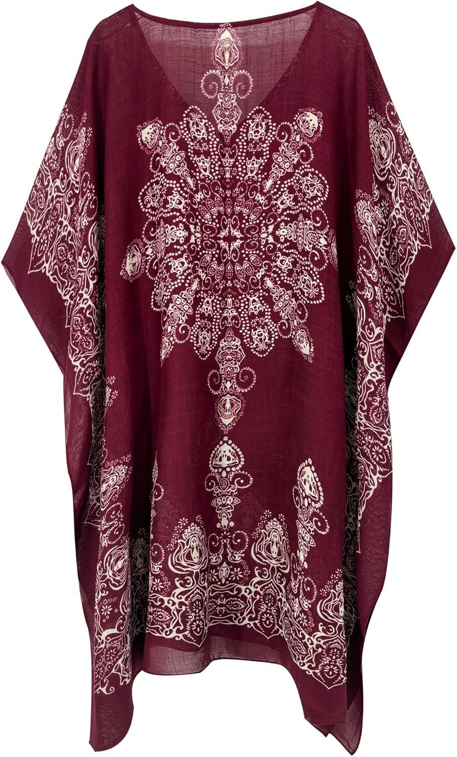 Moss Rose Women’s Swimsuit Cover up Beach Kaftan for Bathing Suit with Floral Pattern(E Wine Print)