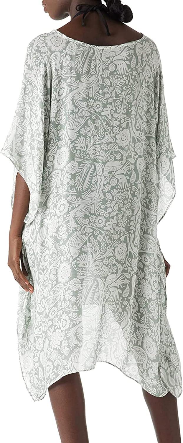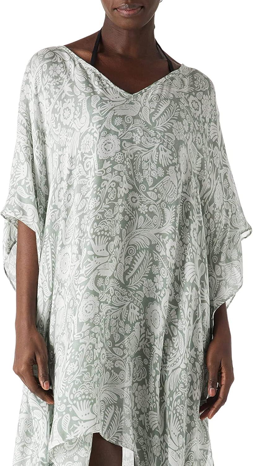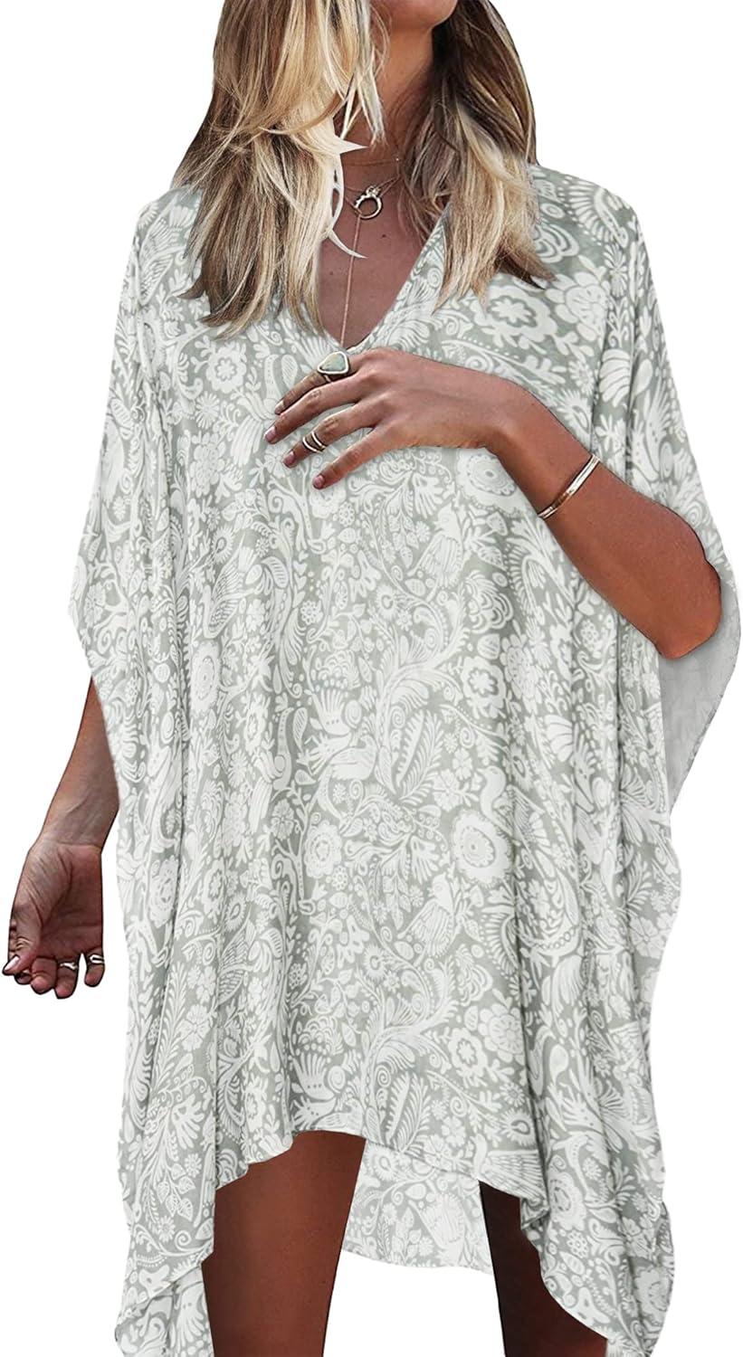 Moss Rose Women’s Swimsuit Cover up Beach Kaftan for Bathing Suit with Floral Pattern(Light Green Pattern)