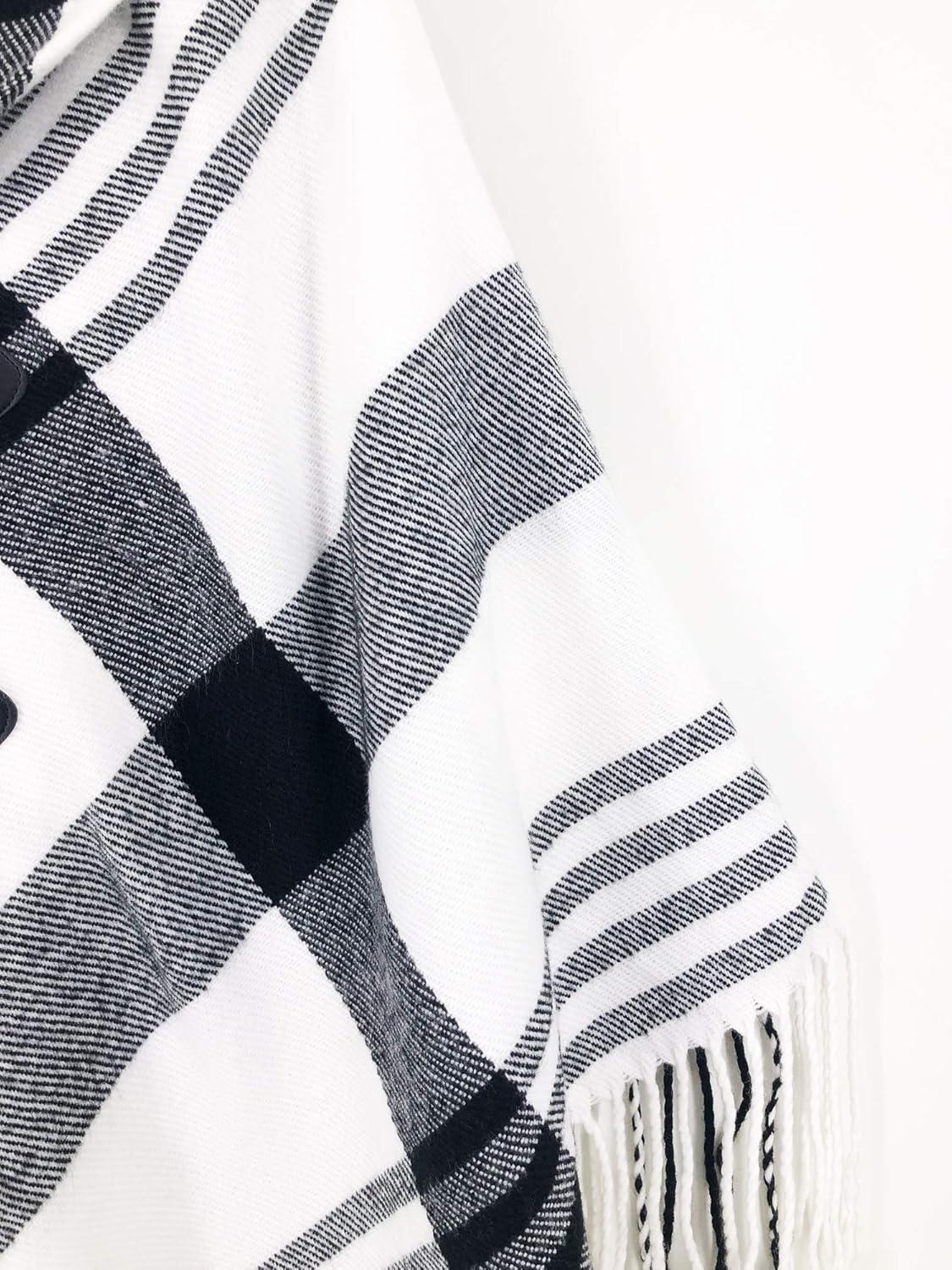 Moss Rose Women’s Travel Plaid Shawl Wrap Open Front Poncho Cape for Fall Winter(E Black Grid)