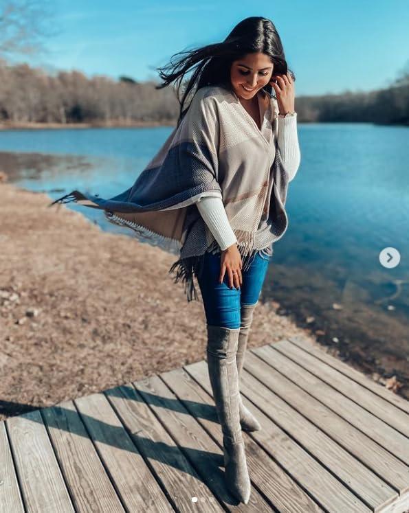 Moss Rose Women’s Travel Plaid Shawl Wrap Open Front Poncho Cape for Fall Winter(G Cupcake)